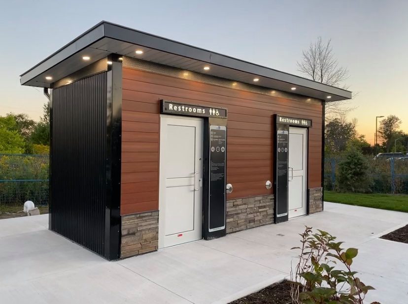 Et compte tenu du grand achalandage de résidents et de visiteurs à longueur d’année, il y avait un besoin pour un bloc sanitaire double, automatisé et antivandalisme, et c’est justement ce que Urben Blu a proposé.
