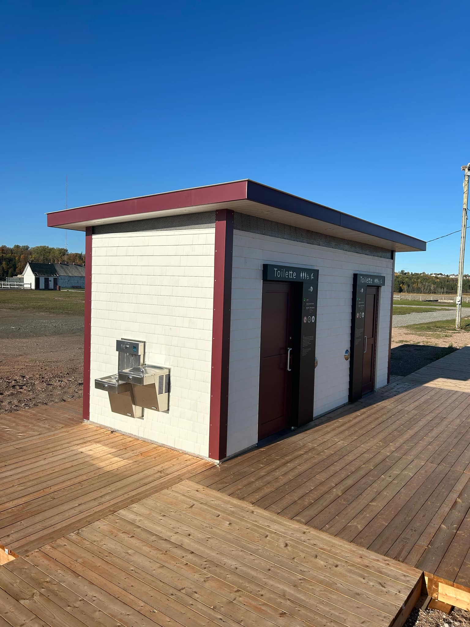 Aujourd’hui, bien que l’industrie maritime ait évolué et que d’autres secteurs économiques aient pris de l’importance, l’histoire de Paspébiac reste solidement ancrée dans ses racines maritimes. C’est pourquoi la ville de Pasbébiac a décidé d’agencer leur toilette Urben Blu aux couleurs de tous les autres bâtiments sur le site historique.